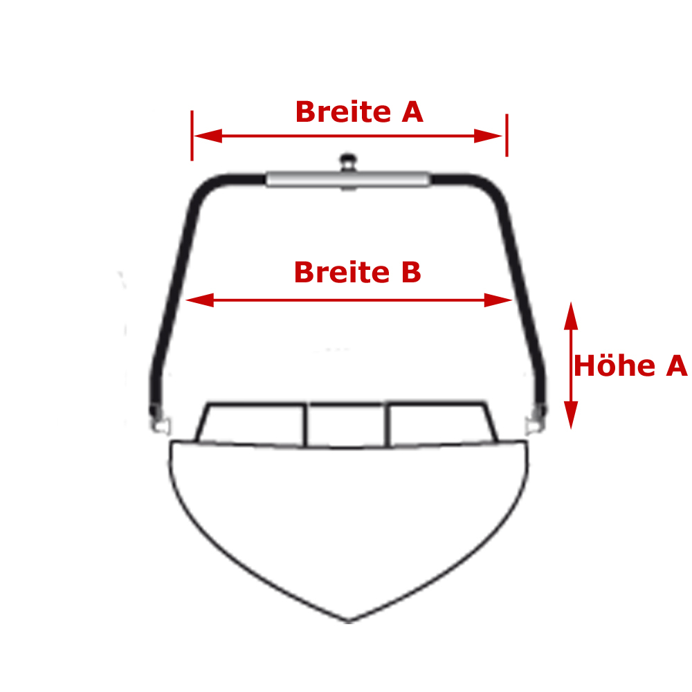 Die Breite des Biminis richtet sich nach der Montagebreite des oberen Teils des Towers (Breite A) und der Montagebreite im Tower (Breite B). Ein Foto ist angehängt. Bitte messen Sie diese Maße bei ihrem Tower aus und senden uns das zu. Die Breite B wird bei ca. 90cm nach oben vom Standfuß aus gemessen.
