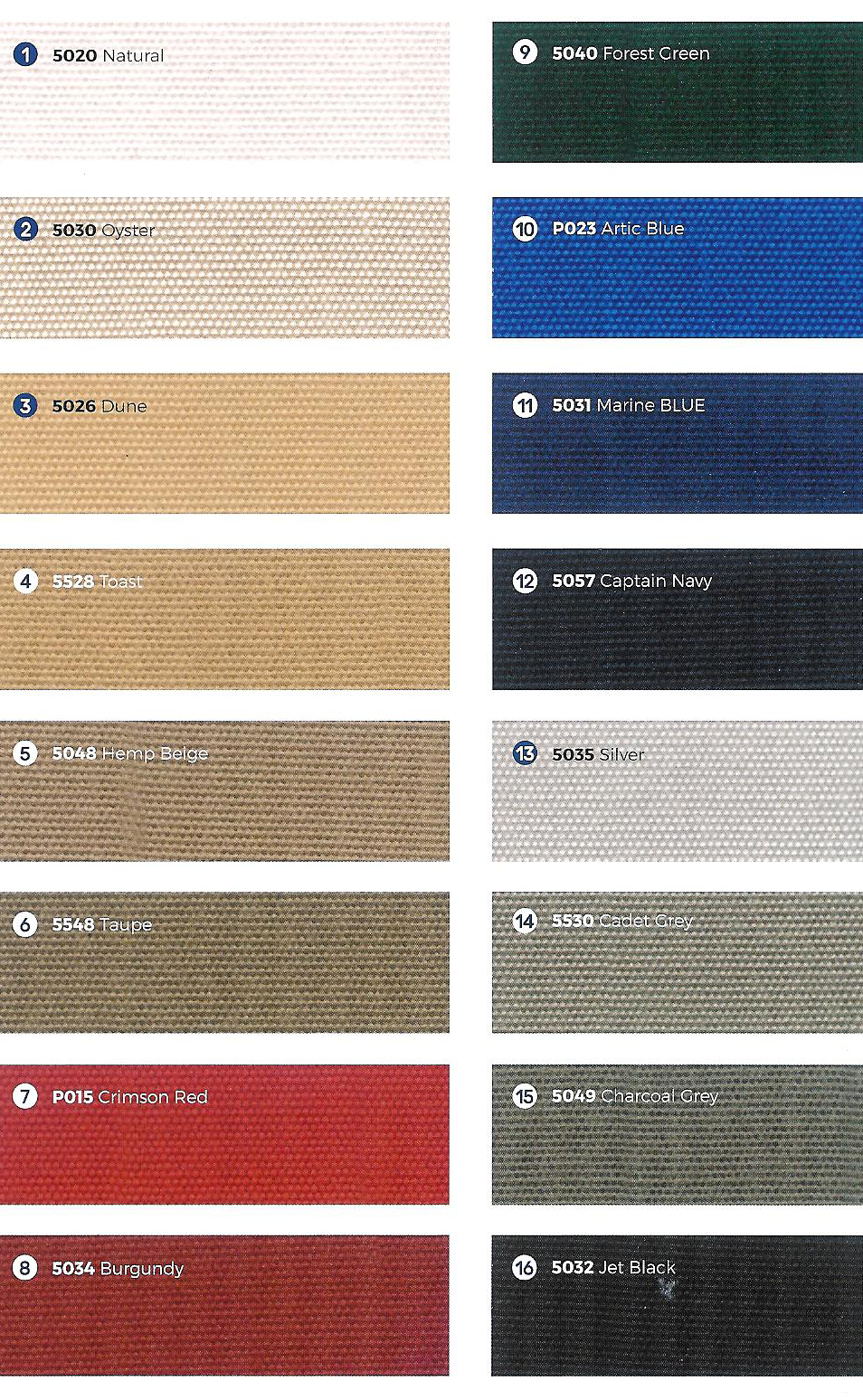 Die Rohre des Biminis sind aus Edelstahl gefertigt. Das Stofftuch wird aus Sunbrella® Plus Qualitätsstoff hergestellt.