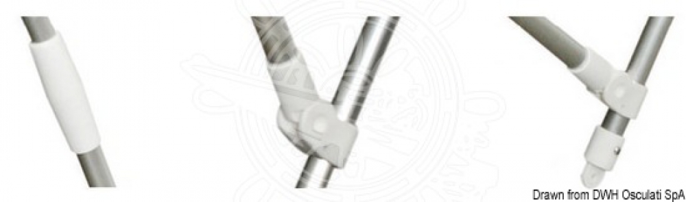 Das Gestänge des Bimini Top ist aus 22mm Aluminium hergestellt. Das Bimini wird mit 4 Abspanngurten abgespannt. Ein Schutzsack ist ebenfalls im Lieferumfang enthalten.