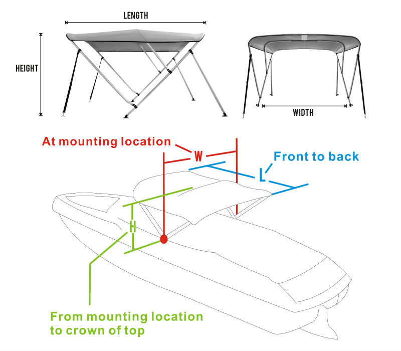 4 Stangen Edelstahl Bimini Top Deluxe 215-228cm Breite