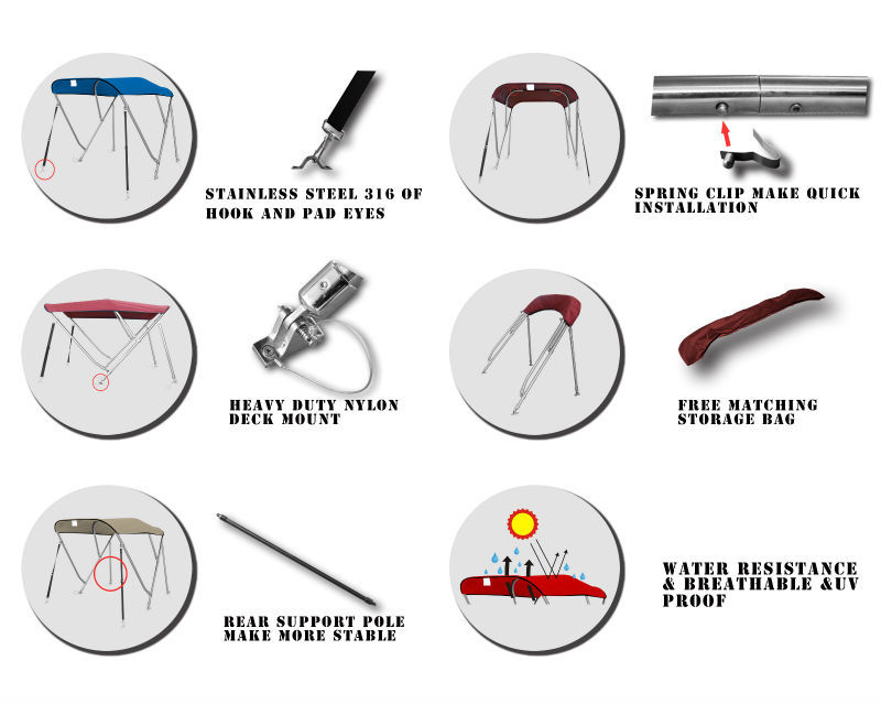 4 Stangen Edelstahl Bimini Top Deluxe 185-198cm Breite