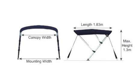 Die Höhe des Biminis kann durch Ablängen der Stangen variabel von 110cm bis 130cm angepasst werden.