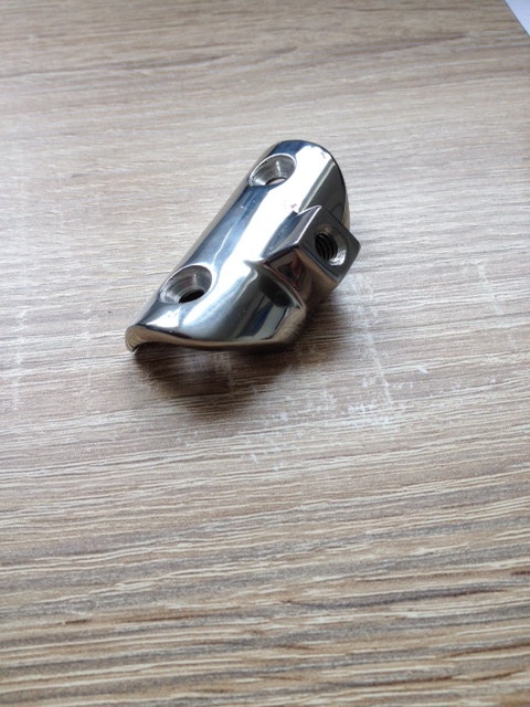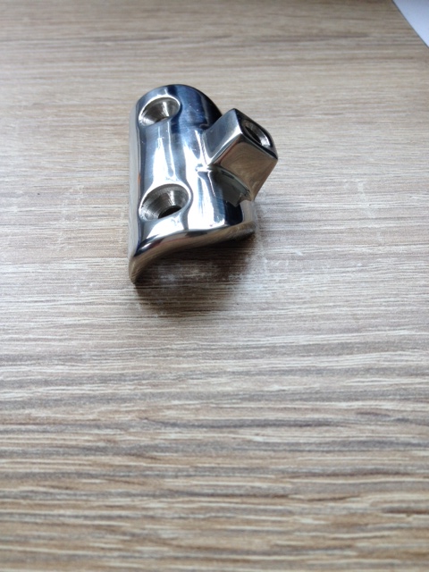 Dieser Beschlag wird auf dem Scheibenrahmen aufgesetzt und montiert. Er wird mit 2 Schrauben befestigt. Das Bimini kann dann seitlich an dem Beschlag befestigt werden.