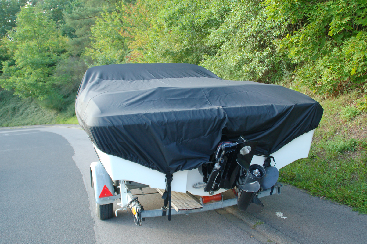 Trailerbare Bootspersenning für Motorboote ohne oder einer kleinen Reling und Innenbordmotor