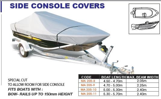 Persenning Konsolenboot mit seitlichem Steuerstand Länge 5,30-5,70 Meter und 2,40 Meter Breite