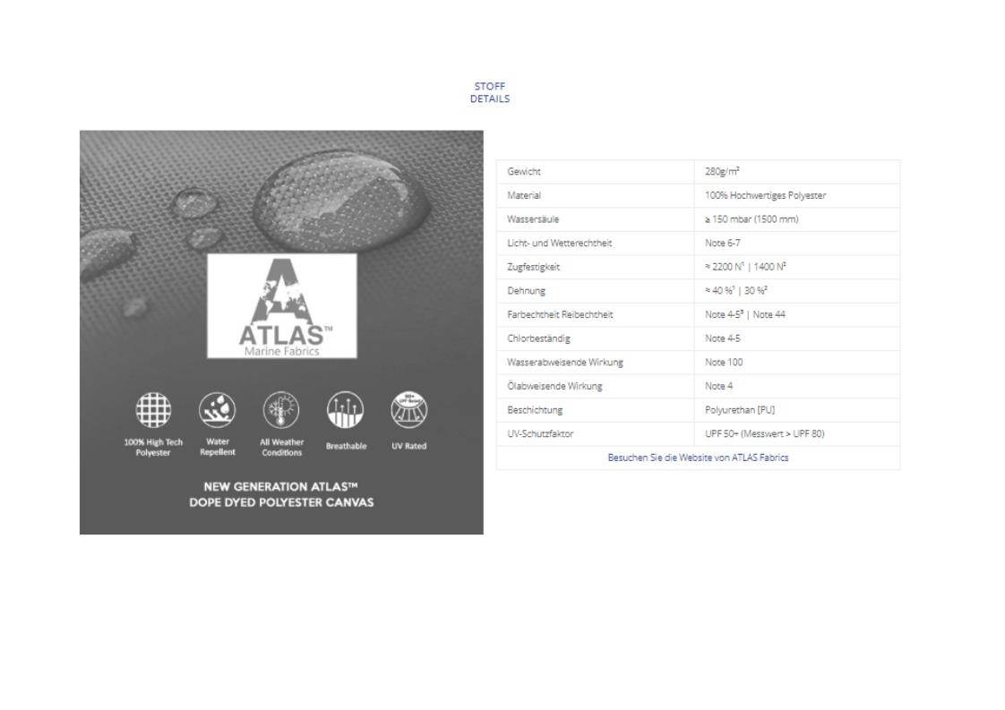 - Hergestellt aus hochwertigsten Polyestergewebe Atlas Marine mit 280 g / m²