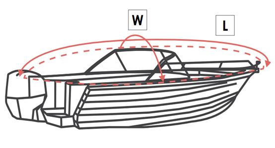 Messen Sie die Gesamtlänge Ihres Bootes an der längsten Stelle. Dafür messen Sie über alle Aufbauten hinweg z.B. Kabine oder Windschutzscheibe. Messen Sie bis zu dem Punkt wo die Abdeckung abschließen soll (Saum).